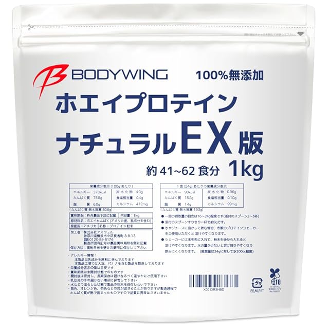 商品名:《新品未開封》ボディウイング ホエイプロテイン (1kg, 無添加ナチュラルEX版)