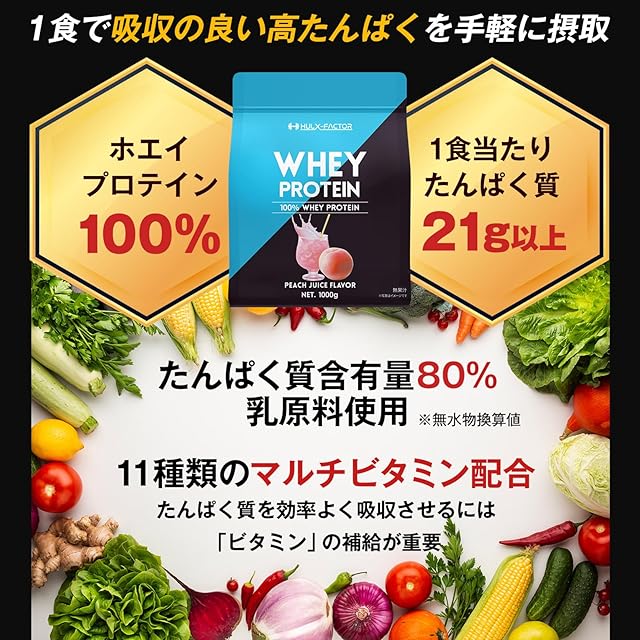 《新品未開封》ハルクファクター ホエイ プロテイン ピーチジュース風味 アスパルテーム 不使用 ビタミン11種 高吸収型 ホエイプロテイン 国内製造 1kg