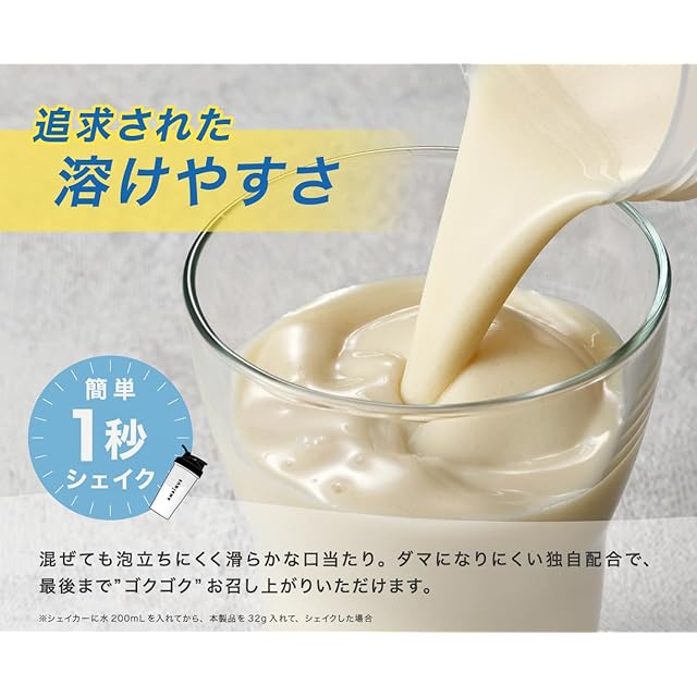 【使用方法】 付属の30ccスプーン小山盛り2杯(32g)を150~200mLの水または牛乳などに溶かしてお召し上がりください。 ※溶かした後は、お早めにお召し上がりください。 ※量はお好みに応じて調整してください。 ※シェイカー(別売り)を使用すると溶けやすく、手軽にお召し上がりいただけます。 【使用上または保管上の注意】 〇開封後は、お早めにお召し上がりください。また、品質保持のため、チャックをしっかり閉めた状態で保存してください。〇濡れたスプーンを袋の中に入れないでください。〇過剰に摂取することは避けてください。〇お召し上がりいただく直前に溶かし、溶かした後は速やかにお召し上がりください。〇薬を服用中の方、あるいは通院中の方、妊娠・授乳中の方は医師にご相談の上お召し上がりください。〇食物アレルギーのある方は原材料をご確認の上、お召し上がりください。体質・体調により、まれにからだに合わない場合があります。その場合にはご使用を中止してください。〇まれに色・風味のばらつきや固まりが見られることがございますが、原料に由来するものですので、品質に問題はありません。〇乳幼児の手の届かないところに保存してください。〇1日の目安量を守ってお召し上がりください。
