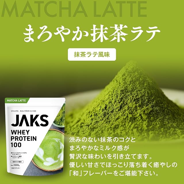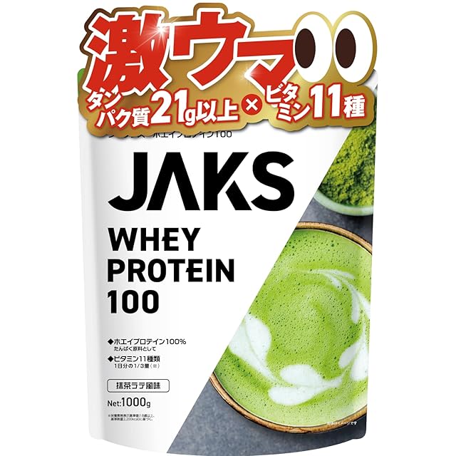 商品名:《新品未開封》JAKS ジャックス ホエイ プロテイン 1kg 国内製造 おいしい ビタミン 高濃度ホエイプロテイン 高たんぱく質 粉末 WPCプロテイン 溶けやすい ぷろていん (1kg, 抹茶ラテ風味)