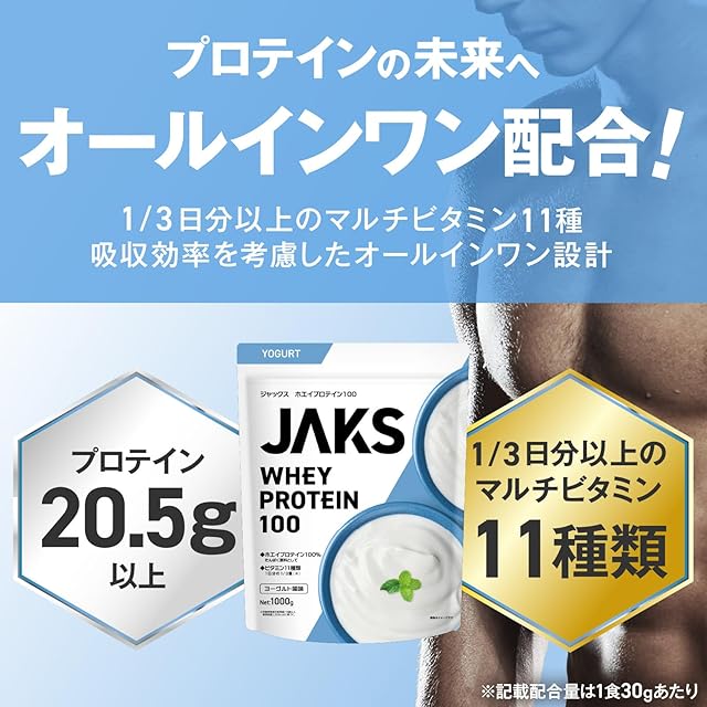 商品名:《新品未開封》JAKS ジャックス ホエイ プロテイン 1kg 国内製造 おいしい ビタミン 高濃度ホエイプロテイン 高たんぱく質 粉末 WPCプロテイン 溶けやすい ぷろていん (1kg, ヨーグルト風味)