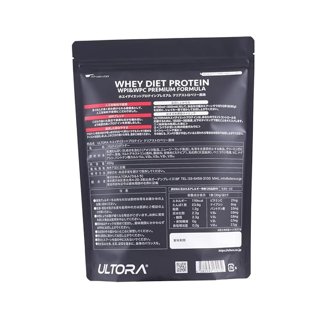 商品名:《新品未開封》ULTORA ウルトラ ホエイ プロテイン 1kg 450g 人工甘味料不使用 国産 ホエイプロテイン ぷろていん (450g, クリアストロベリー風味)