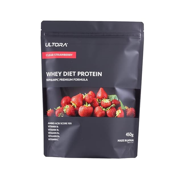 《新品未開封》ULTORA ウルトラ ホエイ プロテイン 1kg 450g 人工甘味料不使用 国産 ホエイプロテイン ぷろていん (450g, クリアストロベリー風味)