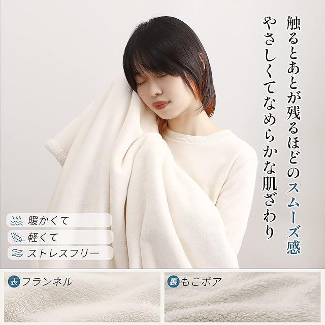 商品名:《新品未開封》【 限定】チチロバ(Titiroba) 毛布 ダブル 二枚合わせ ブランケット 厚手 冬用 フランネル ボア 静電気防止 洗える おしゃれ 大判 180×200cm アイボリー 22DD028
