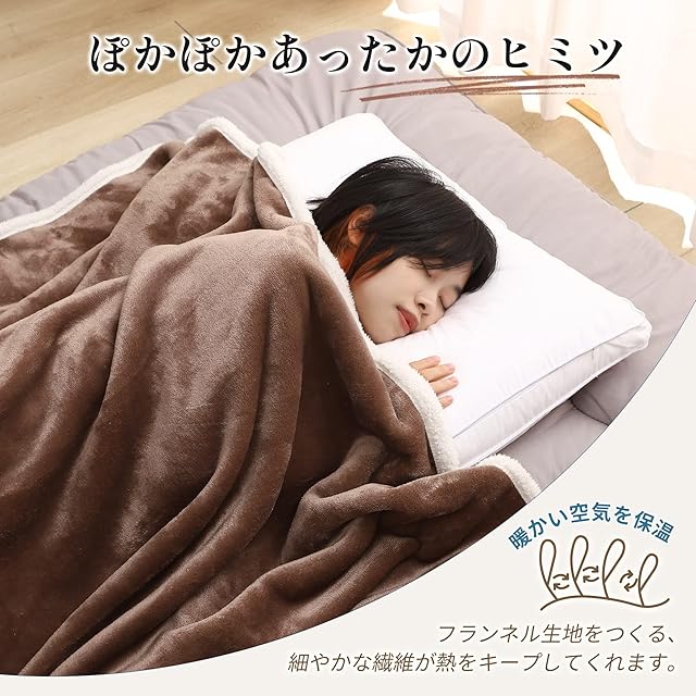 商品名:《新品未開封》【 限定】チチロバ(Titiroba) 毛布 セミダブル 二枚合わせ ブランケット 厚手 冬用 フランネル ボア 静電気防止 洗える おしゃれ 大判 150×200cm ブラウン 22DD024