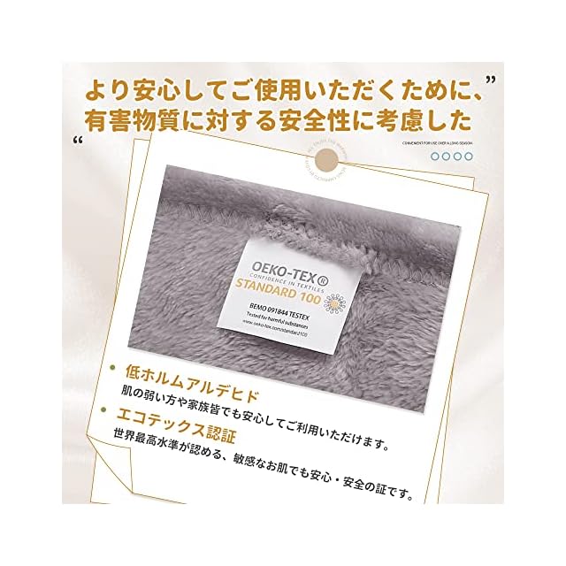 【エコテックス認証済み】世界水準が認める、肌の弱い方でも楽々使える認証を取得、お子様や家族皆でもご利用いただけます。