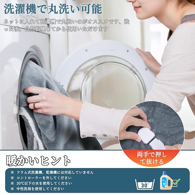【洗濯機で丸洗える&抗菌除臭&頭寒足熱配線】ホットカーペットは、優れたシール性能を持っており、内部の加熱線の損傷を心配する必要はありません。コントローラーを取り外して、家庭の洗濯機で丸洗いや手洗いができます。洗濯試験にも合格しており、安心して洗うことができ、いつでも清潔で衛生的にご利用いただけます。また、高温(50℃)で加熱するとダニが死滅すると言われていますので、温度(50℃)に設定して布団にかけると、ダニを消滅させることができ、電気毛布を常に清潔に保ち、毎年冬に再利用することもできます。経済的で素晴らしい選択です。(※ドラム式洗濯機や乾燥機には対応していません)