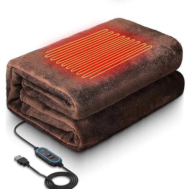 《新品未開封》電気毛布 電気ひざ掛け 【LEDディスプレイ表示 3段階温度調節】 電気ブランケット 掛け敷き兼用 タイマー機能 切り忘れ防止 洗える ひざ掛け 肩掛け USBブランケット 暖房器具 防寒対策 大判 省エネ キャンプ ソロキャンプ 車中泊 テント泊 アウトドア オフィス (ブラウン)