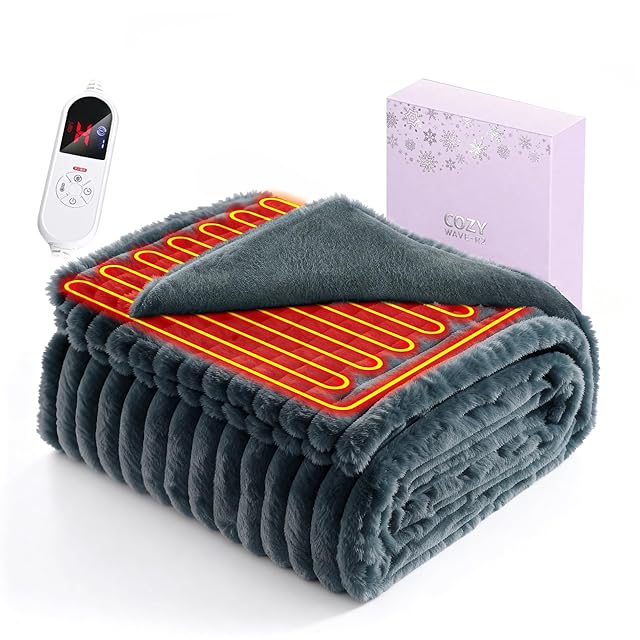 【極寒な日もぽかぽか快適・新登場超極暖電気毛布 】cozywave-r2 電気毛布は2枚合わせ仕様でしっかり厚みがあるうえ、とろける肌触り・高い保温性で寒い冬を暖かく快適に乗り切る!高密度のラビットファー調素材とフランネル素材採用で、外部の冷気を完全遮断して熱をしっかり閉じ込めます。さらに発熱部は日本製高性能電熱線採用、抜群の熱伝導性、安全性で均一で安定して素早く暖められます。厚手素材でも電源入れて僅か1分間で暖かさが感じられます速暖タイプ!また、 電気毛布 最高温度は52℃に達し、極寒の日も温もりで体を包み込んでしあわせ気分で満たされます。