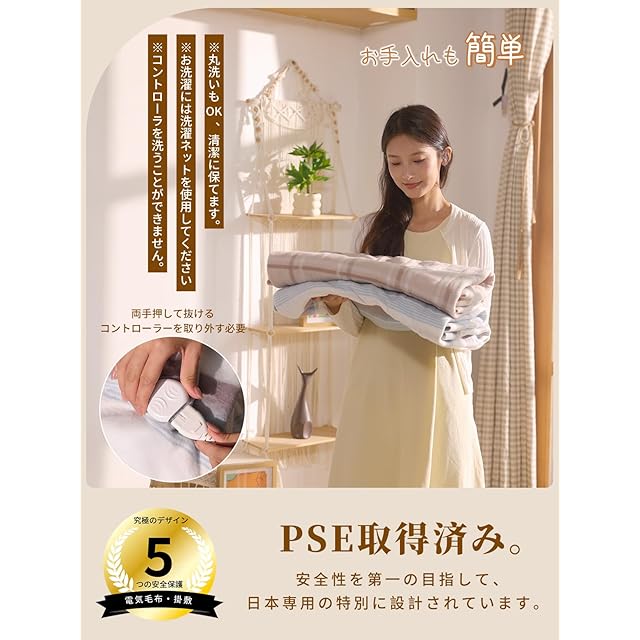 『安全性への徹底追求-何よりもお客様の安全を最優先に║厳しい寒さの中でも、品質と手頃さを兼ね備えた、安らぎの生活をお届け』①電気毛布部分は洗たく機で丸洗える可能、清潔を保ち、抗菌防臭加工とダニ対策も可能。②消し忘れを防ぐ自動オフタイマー機能で、(デフォルト3H)節電と安心の両立を実現。③PTCサーモ制御や過電圧保護、難燃設計、均一加熱による安全対策により、快適な睡眠をサポート。④掛け敷き兼用 電気毛布は静電気防止対策も強化し、パチパチしない使い心地で、冬の快適さをアップ、寒い冬の重宝。⑤特殊配線設計で電磁波を大幅低減、体に優しい環境をつくり出します。⑥PSE認証取得済み。日本の安全基準に準拠した設計が特徴、秋冬必須の極上アイテム。「TOPZEE」は、寝具を通じて安らかな眠りと安心を提供し、お客様の毎日に笑顔と温もりをお届けします