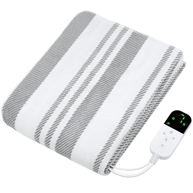 商品名:《新品未開封》電気毛布 掛け敷き兼用 洗える【160x80cm 7段階温度調節 2-4-8-12H切タイマー】AI過熱保護 80W 節電 ダニ退治 電気ブランケット 速暖 省エネ 軽くて柔かい生地 肩掛け 膝掛け シングル 防寒対策 暖房器具 キャンプ オフィス 車中泊 ギフト PSE認証済み (ストライプグレー, 160*80CM)