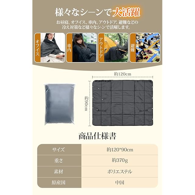 【大判サイズ・収納便利・丸洗い可能】 掛け敷き兼用の大判サイズで、全身を包み込むように温め、冷えた身体をしっかり保護。オフィスや自宅での作業中も快適に過ごせるほか、折りたためばコンパクトに収納可能で、旅行やアウトドアにも最適です。さらに、丸洗い可能なフランネル素材を使用しており、長期間使用しても清潔をキープ。どこにいても手軽に暖かさを感じられる、寒い季節に欠かせないアイテムです。