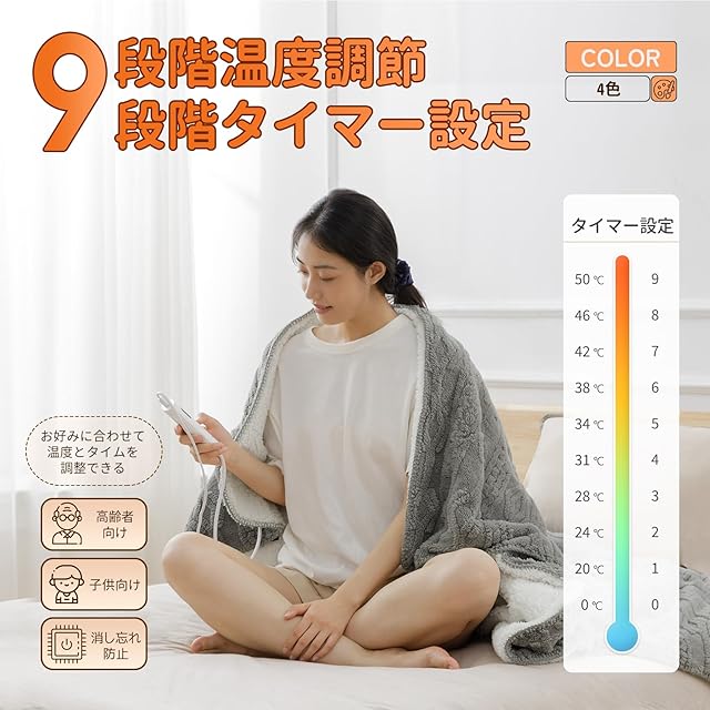 ⋆用途多様:電気毛布のサイズは188 x130cm、160 x80cm2サイズがあり、188 x130cmで高身長の方にも十分な大きさ。季節の変わり目によって冬には電気毛布として、春と秋には普通の毛布としてご利用いただけます。また、ひざ掛け、肩掛け、かけ毛布、キャンプ毛布、昼休み用電気毛布としても使用でき、使い方が多くて実用性があります。家族や友人にプレゼントとしてもいい。