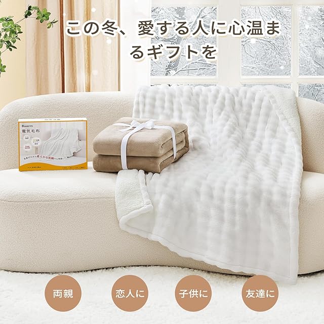 多用途な電気毛布:Bwarm電気毛布は様々なシーンや用途に適しています。ブランケットとして使えるだけでなく、加熱シーツとしても使用できます。寒い日には肩にかけたり、勉強や仕事をしているときに膝にかけたりできます。自分用にも贈り物としても最適です。