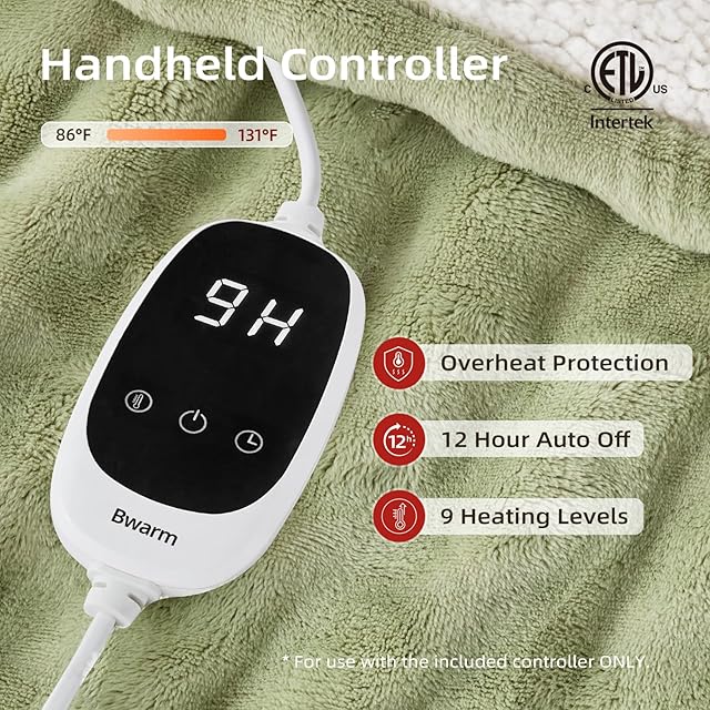 柔らかく快適な温もり:Bwarm電気毛布は高品質なフランネル素材を使用しており、非常に柔らかい手触りで、通電していなくても温かさを感じることができます。快適な暖かさを提供します。