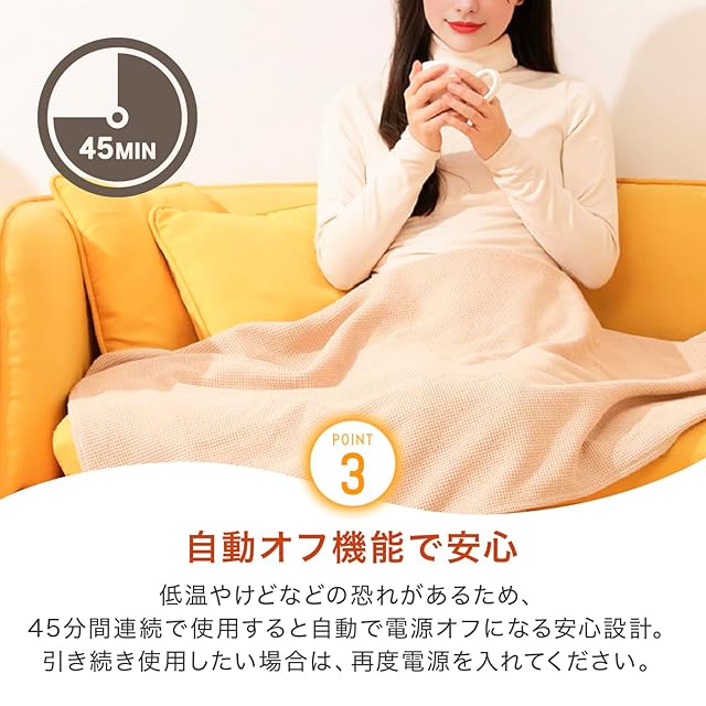 【安全設計で安心して長時間使用可能】過熱防止機能を備えたスマート温度制御システムを内蔵。長時間の使用でも安全にお使いいただけます。低電圧USB給電で省エネ設計なので、自宅でのリラックスタイム、仕事や勉強中、夜間の休憩時など、いつでも安心して暖かさを楽しめます。