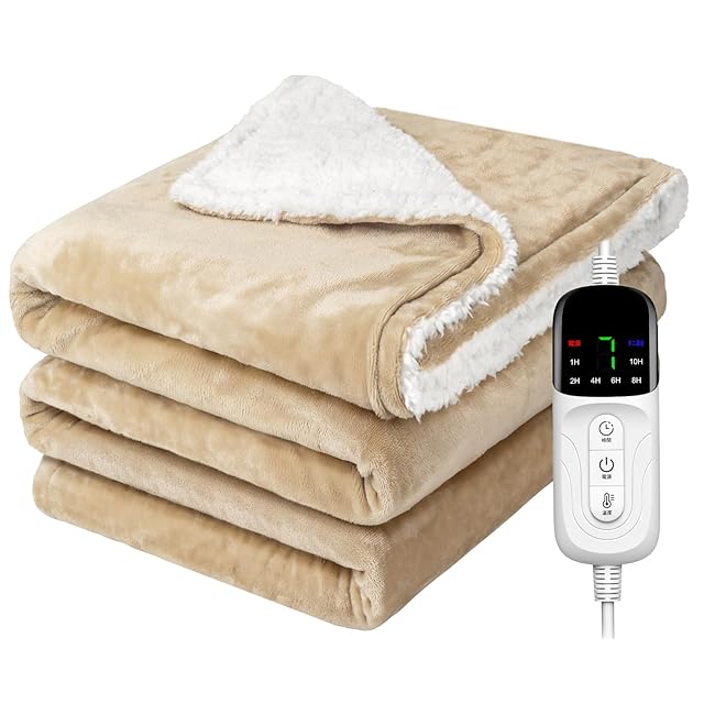 《新品未開封》電気毛布 掛け敷き兼用 188×130cm【大きいサイズ&フランネル+起毛】電気ブランケット 電気ひざ掛け 3分速暖 恒温加熱 ダニ退治 7段階温度調整 6段階切タイマー ふわふわ 暖房器具 省エネ 自動電源オフ 過熱保護 丸洗い可 厚手生地 毛玉なし 頭寒足熱 防寒対策 防臭 抗菌 肩掛け 膝掛け PSE認証済み(ベージュ)