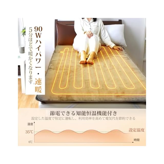【2024年冬新型の電気敷き毛布、5分速暖&恒温加熱】電気毛布のヒーター部分は高品質炭素繊維製品を採用し、電源を入れてから30秒ほどで暖かさを感じ、5分ほどで徐々に全身まで温かくなります。また、恒温加熱機能付き、周囲温度の変化に影響されず、設定した温度を自動的にキープしながら細かい温度調節で、無駄な電気代を抑えて節電を実現します!
