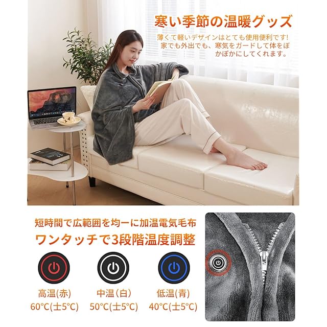商品名:《新品未開封》電気毛布 USB ブランケット 8枚の加熱エリア 150cmx80cm フランネル素材 ファスナー付き 3段階温度調整 省エネ 肩掛け 膝掛け オフィス アウトドア泊用 車中泊 洗える 防寒対策 暖房器具 (グレー 150x80cm)