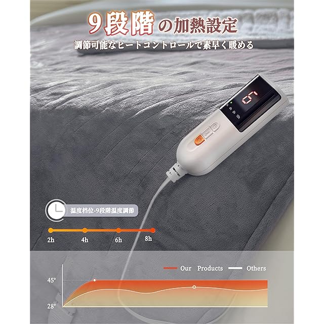 【インテリジェントな温度調整】:ボタン1つで9段階の温度設定が可能。 電気毛布の温度を自由に設定できます。この電気ブランケット、絶縁毛布カバー全体を通る高品質のヒーターワイヤーを装備しています。