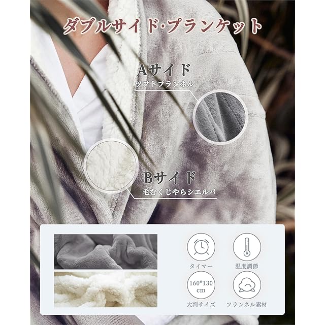 商品名:《新品未開封》GOTCOZY 電気毛布 掛け敷き兼用 - 160×130cm フランネル電気ブランケット 9段階温度調整 10時間自動停止タイマー付 速暖 節電 丸洗い可能 暖房器具 防寒対策(グレー)