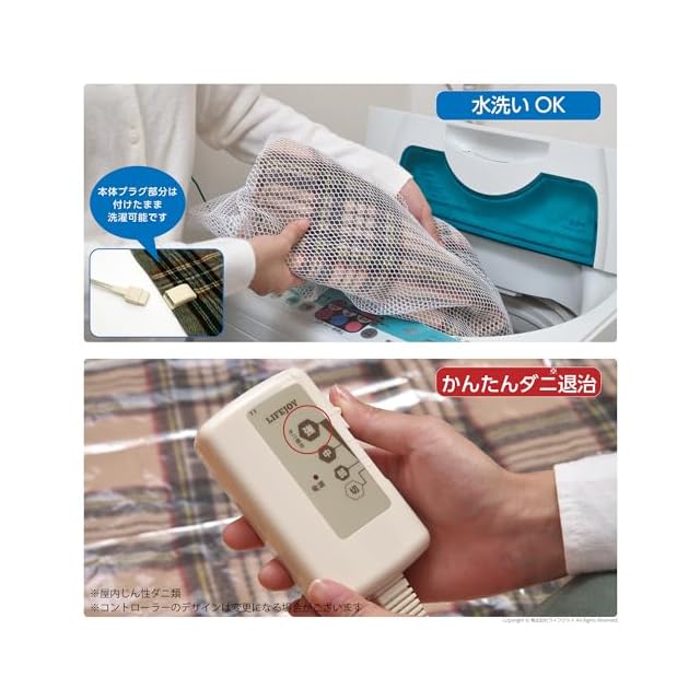 【安心・安全設計】こちらの電気ひざ掛けは、安心・安全性を第一に考えて開発・製造されております。洗濯試験にも合格しているので、コントローラーを外すことで洗濯機にて洗うことができます。※ドラム型洗濯機・衣類乾燥機は不可