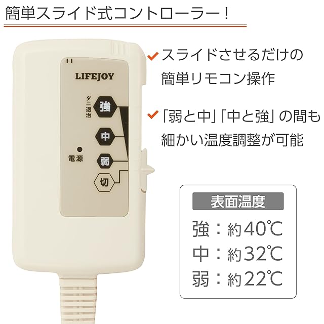 【ダニ退治ができる】屋内じん性ダニ類に対応したダニ退治機能がついています。ひざ掛けをポリ袋に入れて、布団に挟み、3時間「強」で運転するだけです。これだけで99.9%のダニが退治できます。退治した後は、掃除機でダニをよく吸い取ってからお使いください。