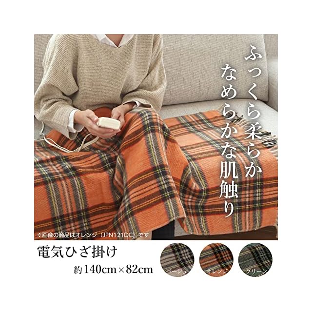 商品名:《新品未開封》ライフジョイ 電気ひざ掛け 日本製 オレンジ チェック柄 140cm×82cm 電気毛布 洗える ブランケット ふわふわ あったか JPN141DC