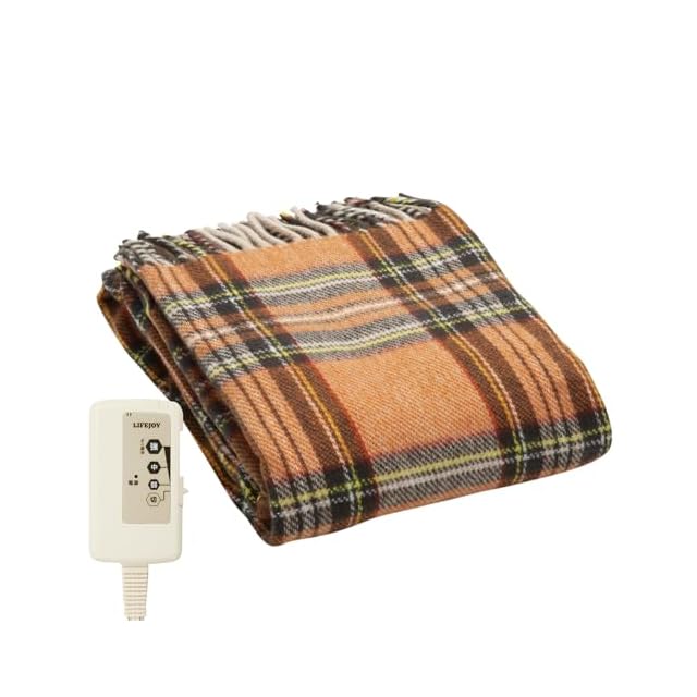 《新品未開封》ライフジョイ 電気ひざ掛け 日本製 オレンジ チェック柄 140cm×82cm 電気毛布 洗える ブランケット ふわふわ あったか JPN141DC