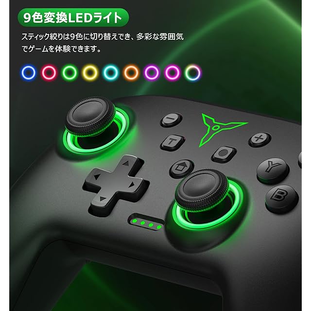 Switch コントローラー 9色RGBライト 光る スイッチコントローラー プロコン マクロ機能 背面ボタン付き 無線 スリープ解除 TURBO連射 1000mAh大容量 Switch/Lite/OLED/Android/IOS/PC対応
