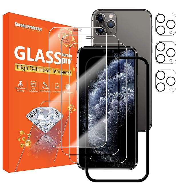 《新品未開封》Seninhi iPhone 11 Pro Max 6.5インチ用 スクリーンプロテクター 3枚 + カメラレンズプロテクター 3枚 強化ガラス [取り付け簡単] [硬度9H] [傷防止]