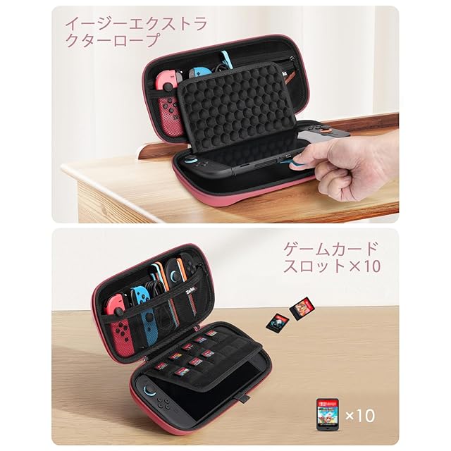 保護、利便性、整理を兼ね備えた、Switch 2の究極の旅行仲間をご紹介します。このケースは頑丈な防水ハードシェルの外装を備え、コンソールを偶発的な落下、衝撃、ほこり、湿気から保護します。最も重要なのは、革新的なハニカムドットパネルがコンソールとケースの間に緩衝層を提供し、シェルとの360°耐衝撃クッションにより、画面を傷から保護し、ジョイスティックを圧力による損傷から防ぎます。また、持ち運びに便利なキャリーストラップも付属しています。ダブルジッパーのデザインで素早くアクセスでき、日常使いや旅行に最適です。内部はSwitch 2にぴったり収まる底部の溝が丁寧に設計されており、しっかりとフィットします。メッシュポケットと引き紐により、アクセサリーの収納が簡素化され、収納力も向上し、ケーブルや小さなアクセサリーなどのアイテムに簡単にアクセスできます。10個のゲームカードスロットを備え、さまざまなゲームやエンターテイメントをいつでも指先で持ち運べます。カジュアルゲーマーでも、頻繁に旅行する人でも、このケースは信頼性の高い保護と直感的な整理機能を提供し、Switch 2 の体験を向上させ、長期間の使用をします。