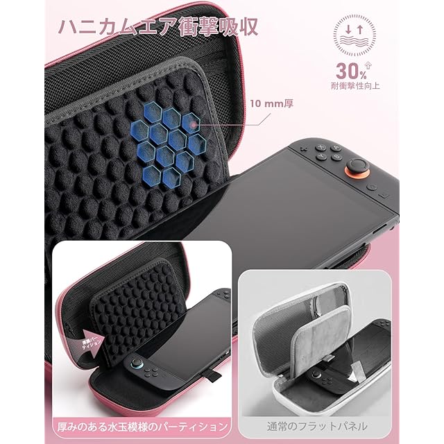 商品名:《新品未開封》【2025 に登場した、最も強力な保護ケース】ケース対応機種 Switch 2, スイッチ2ケース 収納バッグ, 画面保護のためのドット付きハニカムパネル 防塵 防水 耐衝撃 大容量 ゲームカード10枚コントローラー/カード/ドック/ケーブル 持ち運び便利 外出/旅行用 (ピンク)