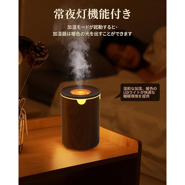 商品名:《新品未開封》【2025新進化モデル加湿器・木目調】加湿器 小型 卓上 除菌 アロマ対応 LEDライト 超音波式 静音 卓上 自動停止機能 空焚き防止 お手入れ簡単 6畳対応 デスク 寝室 オフィス 車用 リビング 次亜塩素酸水対応 乾燥/花粉症対策(ブラウン)