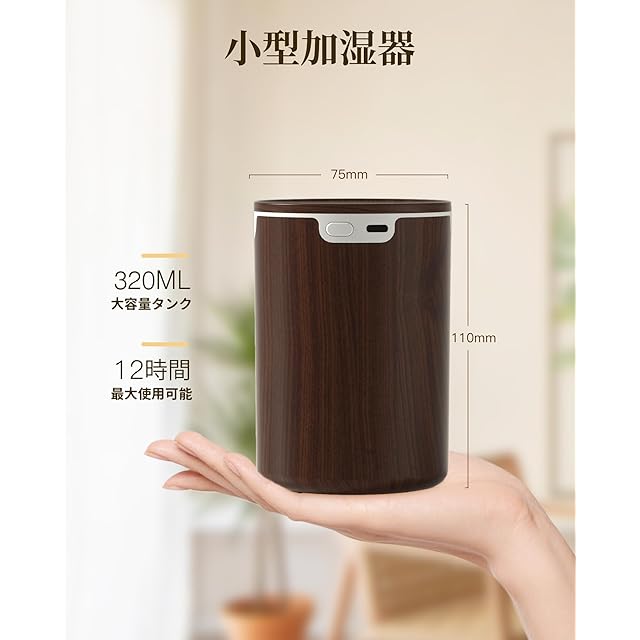 加湿器 卓上 小型 超音波加湿器 320ml 大容量 静音 卓上加湿器 23時間連続稼働 除菌 アロマ対応 車用加湿器 コンパクト