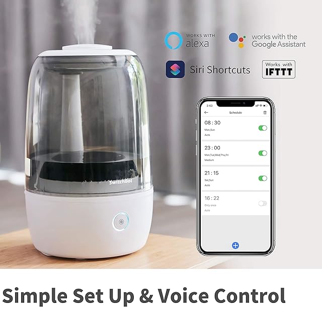 【音声コントロール】 EchoやGoogle Homeなどスマートスピーカーと連携し、音声で加湿器の電源をオン/オフでき、離れた場所から声だけで簡単に操作可能です。AppleSiri、LINE CLOVA、IFTTTなどにも対応。