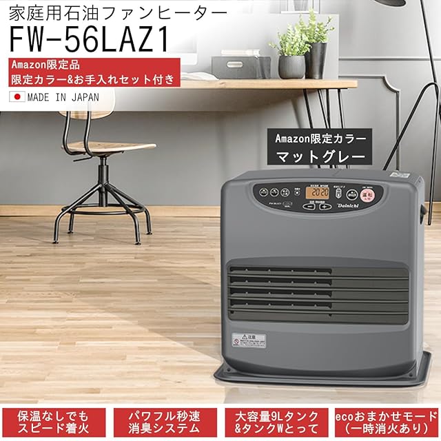 《新品未開封》【限定】 ダイニチ (Dainichi) 石油ファンヒーター (木造15畳まで/コンクリート20畳まで) Lタイプ マットグレー 【お手入れセット付属】 FW-56LAZ1-H