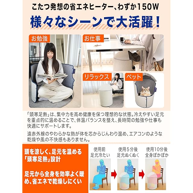 【足元からポカポカ!足湯のような心地よさを実現する足元ヒーター!】エアコンの暖風で眠くなる、環境への負担が気になる方にも最適なパネルヒーターです。底面発熱で足湯のような温かさを感じながら、仕事や勉強に集中できます。このパネルヒーターで、快適な環境を創造し、高い生産性を目指しましょう。