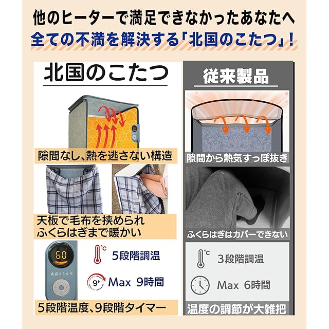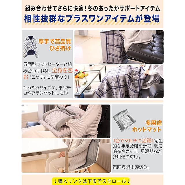 商品名:《新品未開封》パネルヒーター デスク下 足元ヒーター【北国のこたつ ・2年品質】 フットウォーマー 省エネ 10秒速暖 5段階温度調節 9段階切タイマー 転倒オフ 寒さ対策 底面発熱 天板付き 日本仕様 暖房器具 受験勉強 オフィスに最適 足温器 (ゆったり5面式)