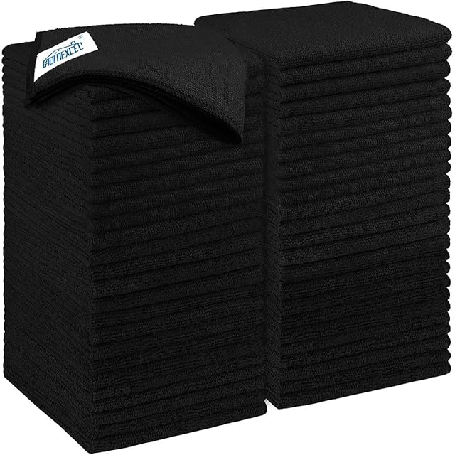 《新品未開封》HOMEXCEL マイクロファイバークロス 車 50枚 吸水速乾 クリーニングクロス 使い捨て可 コーティング ワックス ホイルなど用 業務用 洗車タオル 約32×32cm (ブラック)