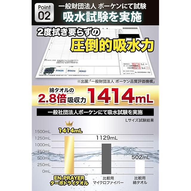 【専門機関にて吸水試験実施】綿タオルの2.8倍の超吸水力今まで体験をしたことがない洗車タオル(吸水タオル)です。