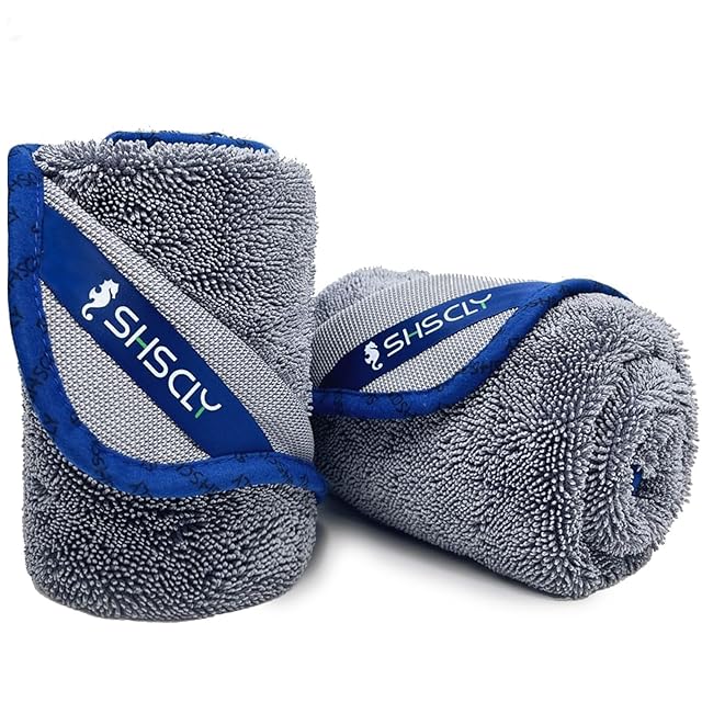 《新品未開封》SHSCLY シスクレー マイクロファイバー 洗車 タオル 第2世代 超吸水 クリーニング 拭き上げ専用 ドライヤー クロス エッジ広がり効果 平らに保ちやすい 楽々拭き取り(約50×60cm 2枚入)