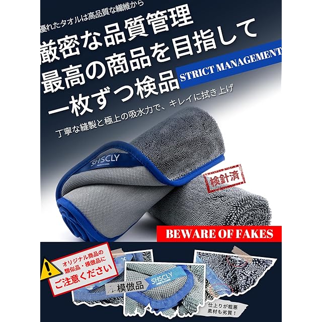 ロゴ入りループと名入れエッジでグレードアップした第2世代洗車タオル。ロングツイストのマイクロファイバーが水分をスムーズに吸収し、オリジナルのエッジデザインで耐久性も向上。タオルをフラットに保ちやすく、軽く引っ張るだけで車体やガラス、プラスチック表面の水分を瞬時に拭き取り、素早く乾かせます。使用方法: タオルを二つ折りや四つ折りにし、車体に平らに置き、角を持ちスッと拭くだけで一発吸水し、車をピカピカにします。車内やペットの濡れた体にも使え、工夫次第で多用途に活用可能です。サイズ:50x60cm 2枚入り 素材:ポリエステル80%、ナイロン20% 色:本体 グレー 主な特徴:柔らかく超吸水マイクロファイバーを使用しており、糸くずが残りません。車体を簡単に拭くことができます。お手入れ方法:SHSCLY (シスクレー) 超吸水タオルは手洗いまたは洗濯機で洗濯可能です。洗濯後は低温で乾燥させてください。漂白剤や柔軟剤の使用は避けてください。洗濯時には糸がほつれないようにご注意ください。万が一ほつれた場合でも、吸水性能には影響を及ぼしません。写真は撮影環境や画面の設定、実際の使用環境により色味が異なって見える場合があります。製品は折りたたんでお届けいたしますため、、開封時に折りジワが生じることがありますが、時間の経過と共に徐々に薄れていきます。