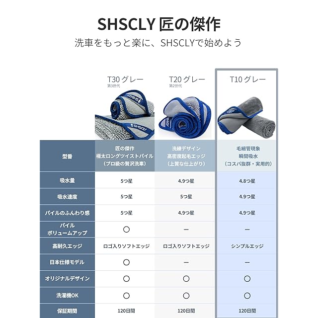 車体や車のガラスを掃除する時に、一番嫌な事は、表面に残った糸くずです。見栄えは、良くないし、綺麗にするのにも時間も手間もかかります。糸くずが、残りにくい瞬間吸水素材を開発。ロングループツイスト製法を使用。ロングパイルでツイスト織り方で超吸水マイクロファイバータオルを製造しました。簡単に水分を拭き取れるだけでなく、拭き跡や厄介な糸くずも一切残りません。使用方法:タオルを二つ折りか四つ折りにしてと効率よく簡単に表面を拭けます。または、車体の表面に平らに置き、二つの角を持ってスッと拭いたら、瞬間吸水して車をピカピカにしてくれます。サイズ:30x40cm 3枚入り、組成:ポリエステル80%、ナイロン20%。色:本体 グレー。主な特徴:柔らかい超吸水マイクロファイバー。糸くずが残りません。簡単な方法で車体を拭きましょう。お手入れ方法:SHSCLY (シスクレー) 超吸水タオルは洗濯機洗い可能です。洗濯後は低温乾燥させてください。漂白剤、柔軟剤の使用はおやめください。洗濯の際、糸がほつれないようにご注意ください。万が一ほつれた場合は吸水性能に影響出ません。画像は撮影環境や画面の設定、実際にご使用の環境 (照明、壁紙、日差し) により色味が異なって見えます。梱包折り畳み (開梱時は折りジワがございますが製品不良ではございません。) 時間の経過により徐々に薄れていきます。○ 濡れたまま長時間放置すると色移りの原因になります。○ 本品は染料の特性上、長時間日光に当たると変色する恐れがありますのでご注意ください。○ 危険ですので火気には近づけないでください。○ 強くこすったり、汚れが付いたまま拭くと、車の塗装やコーティングを傷つける原因となります。