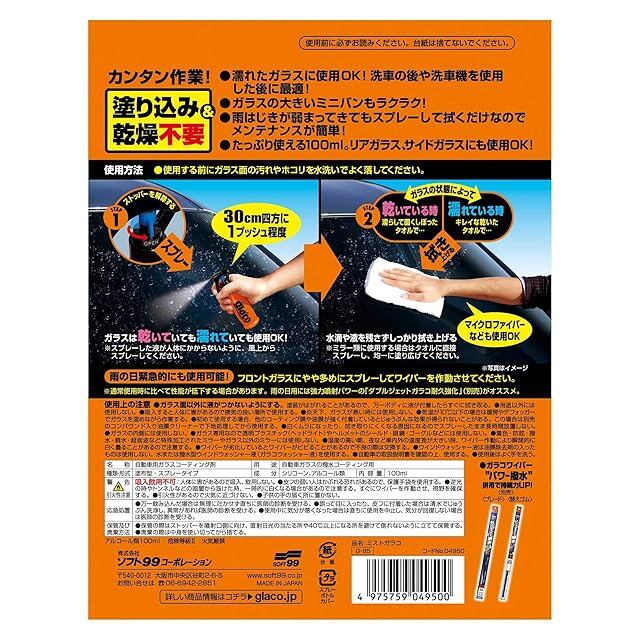 《新品未開封》ソフト99(SOFT99) glaco(ガラコ) 撥水剤 ミストガラコ 自動車ガラスの撥水コーティング用 04950