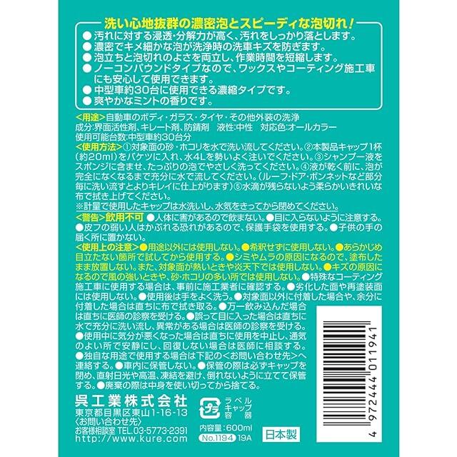 商品名:《新品未開封》KURE(呉工業) LOOX(ルックス) クールシャンプー 600ml 自動車用シャンプー 1194