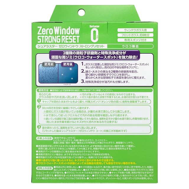 《新品未開封》SurLuster(シュアラスター) ゼロウィンドウ ストロングリセット 80ml 【ガラスの油膜取り ウロコ取り】 水アカ 洗車 車 フロントガラス ウォータースポット 研磨剤 コンパウンド入り 専用スポンジ付き S-133