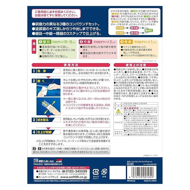商品名:《新品未開封》ソフト99(SOFT99) 99工房 補修用品 コンパウンドトライアルセット 塗装面の研磨用 09192