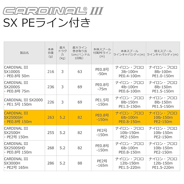 商品名:《新品未開封》AbuGarcia (アブガルシア) CARDINAL カーディナル III SX2500SH ハイギヤ - PE0.8号 150m スピニングリール PEライン付き 替えスプール付属