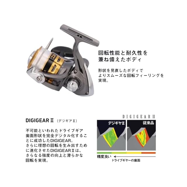 標準巻糸量 ナイロン(号-m):6-200/8-140 :1/1 付属糸:6号-200m 新型ボディ:形状を見直した新型ボディでよりスムーズな回転フィーリングを実現。